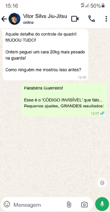 Com o CÓDIGO INVISÍVEL DO FAIXA BRANCA, você segue uma ESTRUTURA CLARA e ESTRATÉGICA que mostra exatamente o que fazer nos primeiros segundos do rola, COMO ORGANIZAR SEU JOGO COM INTELIGÊNCIA e como REAGIR SOB PRESSÃO COM CONFIANÇA.